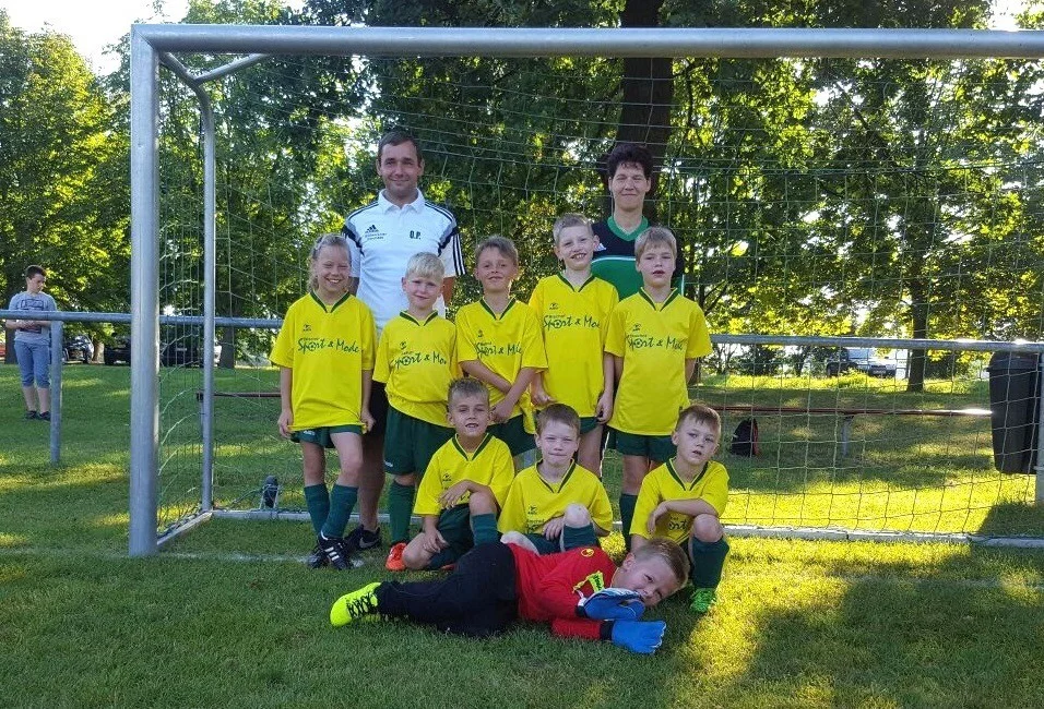 | Hintere Reihe v.L.: | Eny Plotka, Unbekannt (Trainer), Pepe Hädrich, Leon Hensel (C), Malte Tornow, Manja Plotka (Co-Trainer), Carlo Kritz |