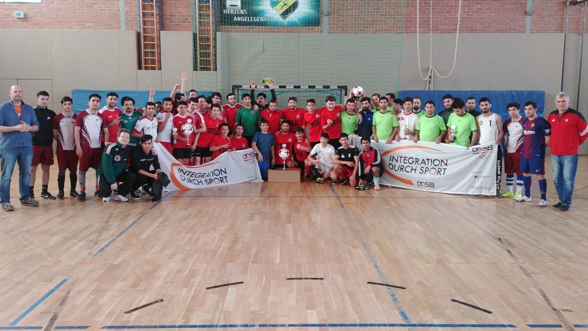 Aus den Händen von Armin Romstedt und dem Jugendwart des KfA Mittelthüringen Sportfreund Bothe erhielten alle Mannschaften Pokale, einen Spielball und die Siegermannschaft einen Trikotsatz der TFV. Zum Abschluss des Turniers bedankte sich der Präsident des FSV Ilmtal Zottelstedt, bei allen Beteiligten. Bei den Spielern für die 160 Minuten durchweg spannenden und fairen Spiele, bei den Fans für die Unterstützung ihrer Mannschaften und bei den Spielerbetreuern, die sich wiederum für die guten Gespräche und Anregungen für ihre weitere Arbeit bedankten. Sportfreund Häfner lobte aber auch die Schiedsrichter für die weisen Entscheidungen, die Verantwortlichen des Kreises Weimarer Land, die dem Verein die Halle zur Verfügung stellten und dem Hallenwart Herrn Minner. Ein besonderer Dank galt dann den vielen Vereinsmitgliedern, die dieses Turnier vorbereiteten, die Durchführung absicherten und am Schluss den Besen schwangen. Am Ende verabschiedete sich ein syrischer Sportler mit den Worten.