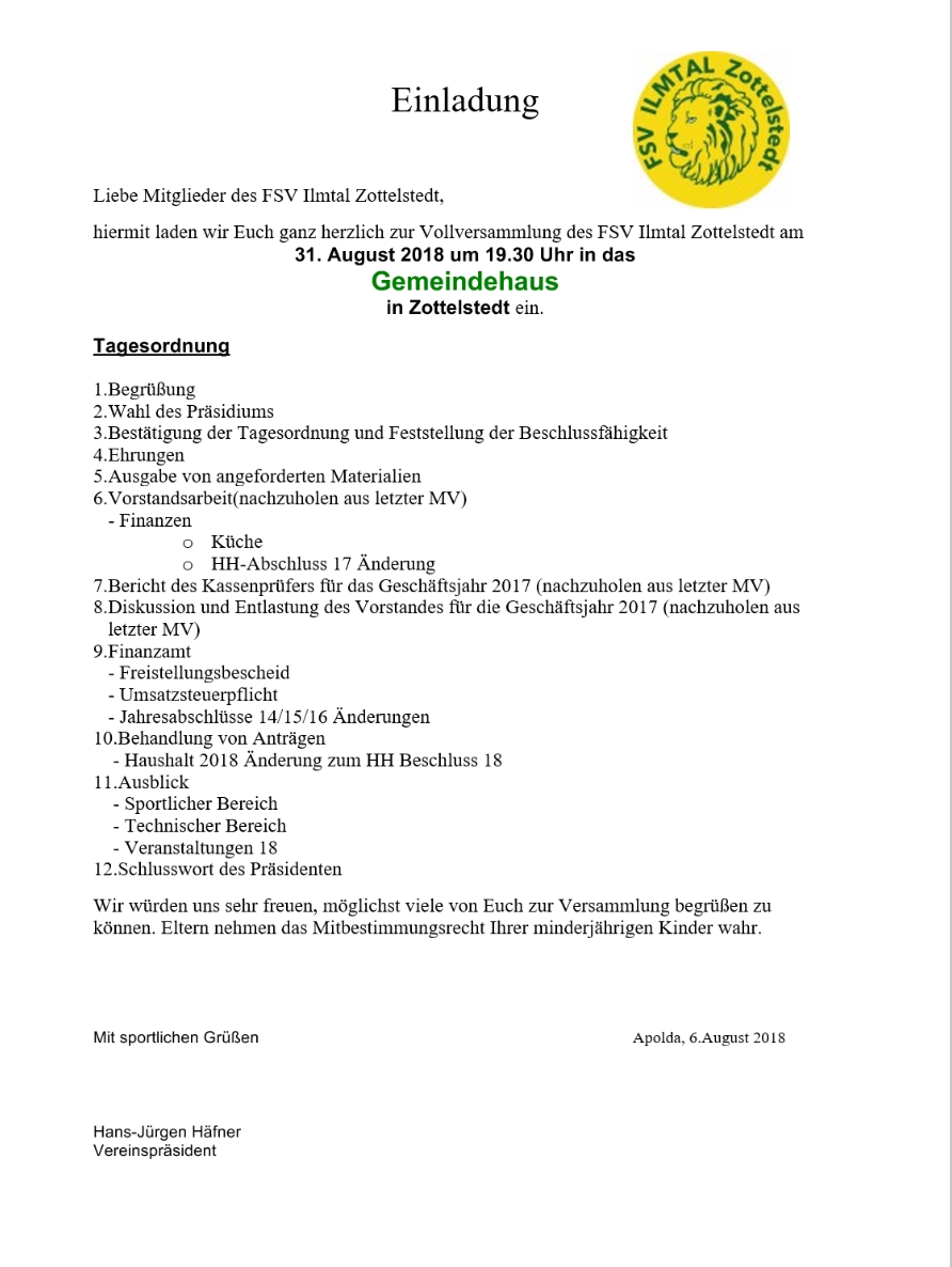 Tagesordnung zur MV am 31.08.18