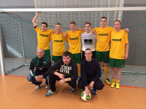 Trotz einiger Absagen und mit nur einem Ersatzspieler qualifizierten sich unsere Jungs um " Interimskapitän" Kevin Trepanovski für das Finalturnier, um die Hallenkrone des KFA Mittelthüringen ,der A- Junioren. Wichtigster Ausfall hierbei war wohl die kurzfristige Absage von unserem "Capitano" Tom Jennicke der sich bei einem Sturz mit dem Moped verletzte und nur als moralischer Beistand anreisen konnte. Höchsten Respekt verdienen die mitwirkenden Spieler die ihre Aufgaben hervorragend lösten und nie Zweifel aufkommen liesen das der Finaleinzug das angestrebte Ziel ist. Schon im ersten Spiel gegen den VfB Apolda wurden unsere Jungs ihrer Favoritenrolle gerecht und fegten die sich tapfer wehrenden Ortsnachbarn mit 5:0 von der Platte. (Kevin Trepanovski 2, Scott Thomas 2, und Florian Petzold) Kurius hierbei Scott gelang nach Kopfballablage von Florian P. der einzige Kopfballtreffer des Turniers. Auch im zweiten Spiel gegen Einheit Bad Berka konnten wir fünf Tore erzielen. Zwar gingen die Kurstädter nach einer Schlafwageneinlage unserer Verteidigung in Führung ,doch geweckt von diesem Gegentreffer wurde das Ergebnis schnell gedreht und wir gewannen am Ende mit 5:1. (Florian Petzold 3, Kevin Trepanovski, Robin Rammelt) Im dritten Spiel sahen wir uns dem Tabellenzweiten unserer Kreisoberligastaffel dem SC 03 Weimar gegenüber. Auch der SC 03 hatte bis dahin alle Spiele gewonnen und ein Sieg wäre die vorzeitige Qualifikation für das Finalturnier gewesen. Unsere Jungs erwischten den besseren Start und konnten gegen Mitte der Spielzeit durch Florian Petzold in Führung gehen. Vorausgegangen war eine Lehrbuchkombination über Scott und Kevin. Kurze Zeit später hatte Florian auch noch die Entscheidung auf dem Fuß. Nach Faulspiel an Scott zeigte der Schiedsrichter auf den Neunmeterpunkt. Doch Florian scheiterte am stark reagierenden Weimarer Schlußmann. Also hieß es weiter zittern! Weimar drängte nun auf den Ausgleich und nach einigen vergebenen Möglichkeiten gelang dieser mit unserer freundlichen Mithilfe. Einen eigentlich harmlosen Ball lies Felix in unserem Tor wieder fallen. Ein Querpass und es stand 1:1! Daran änderte sich bis zum Abpfiff nichts mehr. Somit durfte im letzten Spiel gegen die SG Oberweimar/ Empor Weimar nicht verloren werden um sicher ins Finale einzuziehen. In den Anfangsminuten agierten unsere Jungs viel zu offensiv und vernachlässigten die Verteidigung sträflich. Hier ist es vor allem Felix in unserem Tor zu verdanken das die Strafe ausblieb.Einige Male reagierte Felix überragend und hielt das Spiel offen. Felix das war ganz viel dein Sieg !!!!! Und wie das eben so ist wenn du vorne nicht triffst wird das irgendwann bestraft. Florian Weise brachte uns mit einem verdeckten Schuß auf die Gewinnerstraße. Die nun wütend anrennenden Jungs von Oberweimar mussten nun ihre Defensive öffnen. Es ergaben sich nun mehr Räume die unsere Jungs eiskalt nutzten und durch Tore von Robin Rammelt, Florian Petzold und Scott Thomas ein 4:0 Sieg herausschossen. Damit war die Qualifikation als Gruppensieger perfekt. Zum Finalturnier in zwei Wochen in Saalfeld muss dringend noch an unserer Defensive gefeilt werden. Vielleicht ist da ja Tom und der eine oder andere mehr wieder mit von der Partie.