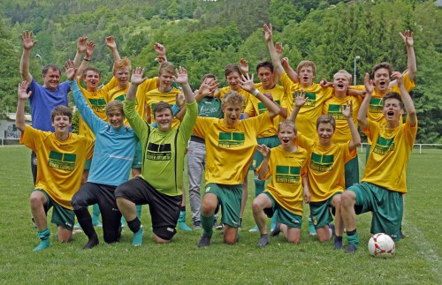 Ein Hurra den B- Junioren der Spielgemeinschaft zum zweiten und hoffentlich nicht letzten Titel der Saison. Mit einer bemerkenswerten Rückrunde und enorm großer Nervenstärke ist es der Truppe um Trainer Rene Gerlach gelungen, die Meisterschaft bei den B-Junioren zu gewinnen. Dieser Erfolg hat viele Helfer und ist insbesondere einer seit Jahren eingeschworenen Gemeinschaft zu verdanken. Wenn Kinder für den Trainingsauftakt extra einen Tag früher von einer Freizeit an der Ostsee zurückgeholt werden ( Familie Fauer), ein Junge nicht zur goldenen Hochzeit mitfährt (Familie Gunstheimer), da die Mannschaft sonst nicht voll wird oder mit zwei Autos nach Österreich in den Urlaub fährt (Fam. Roos), um pünktlich zur Hallenendrunde da zu sein, zeigt genau das den Zusammenhalt dieser Gemeinschaft. Es ließe sich mit weiteren Beispielen fortsetzen. So zum Beispiel mit dem fürs Internet unersetzbaren Herrn Müller und unseren Finanzminister Herr Kohler.
